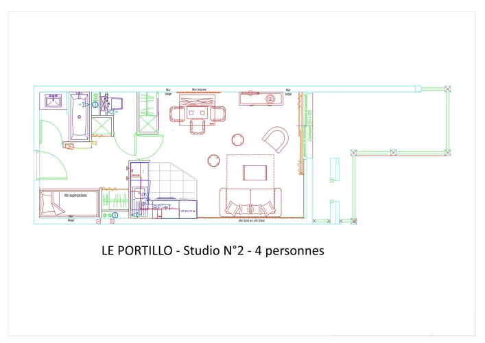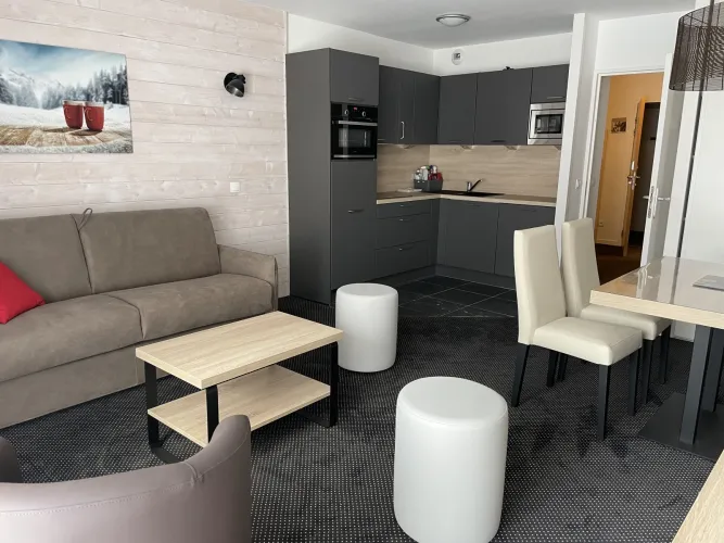Residencia LE PORTILLO con piscina, estudio para 4 personas, de 38 m², orientado al suroeste con vistas a la montaña y a la estación, situado en la primera planta, con terraza.