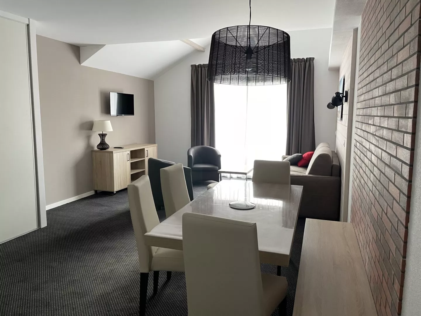 Salón: sofá cama doble de 160 cm, televisión.
