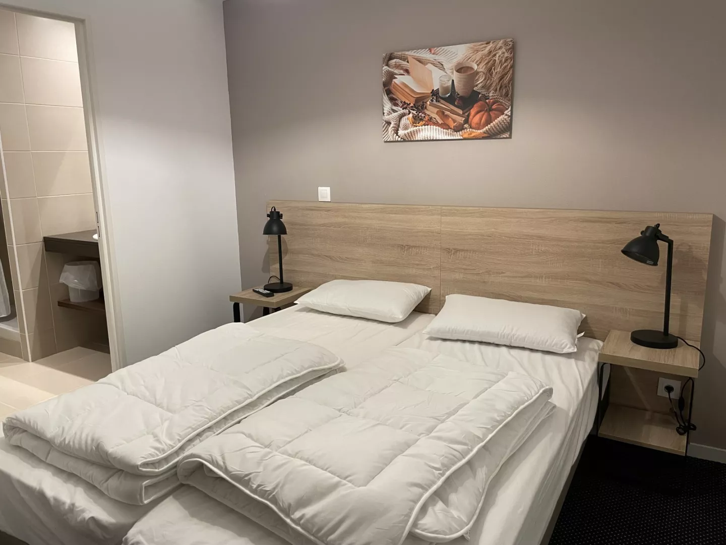 Cabina (habitación sin ventana): 2 camas de 80 cm, televisión y cuarto de baño: ducha, lavabo y WC.