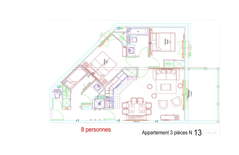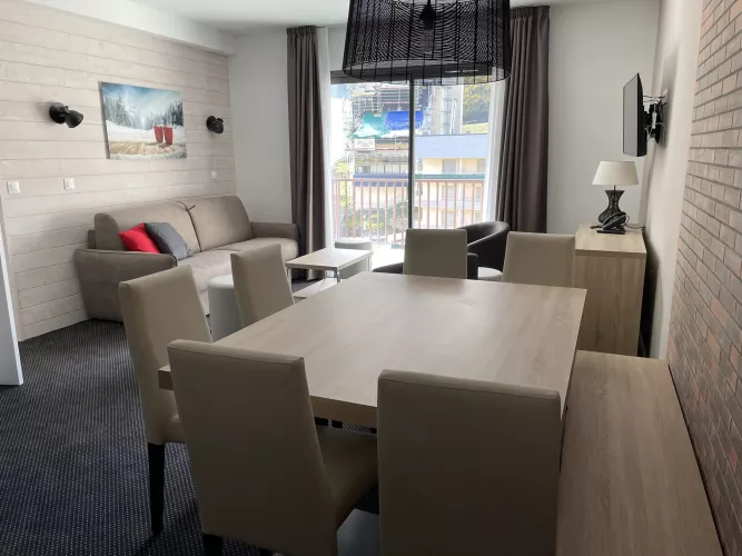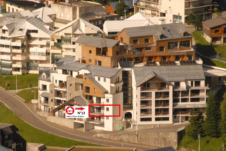 Residencia LE PORTILLO con piscina, apartamento de 3 habitaciones para 6/8 personas, de 67 m², orientación suroeste, vistas a las pistas y a la estación, situado en la 1.ª planta con terraza.