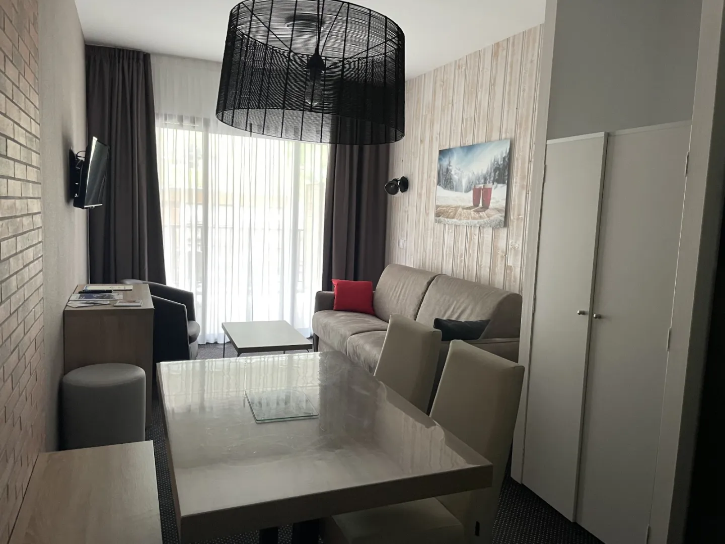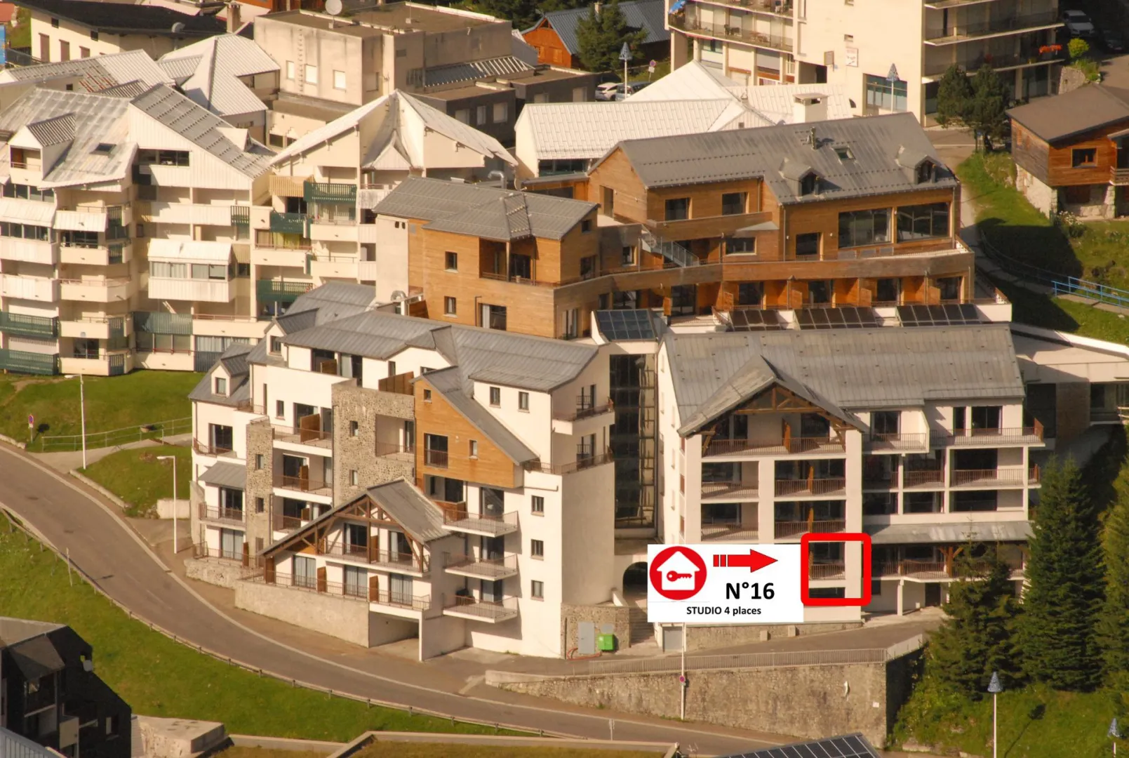 Residencia LE PORTILLO con piscina, estudio para 4 personas, de 29 m², orientación suroeste, vistas a las pistas y a la montaña, situado en la 1.ª planta con terraza.