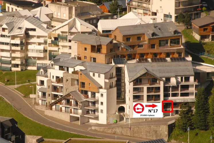 Residencia LE PORTILLO con piscina, estudio para 4 personas, de 29 m², orientación suroeste, vistas a las pistas y a la montaña, situado en la 1.ª planta con terraza.