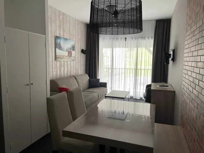con bañera de hidromasaje y piscina para niños, gimnasio, sala de juegos, guardaesquíes con secador de botas. Wifi en los apartamentos y zonas comunes.