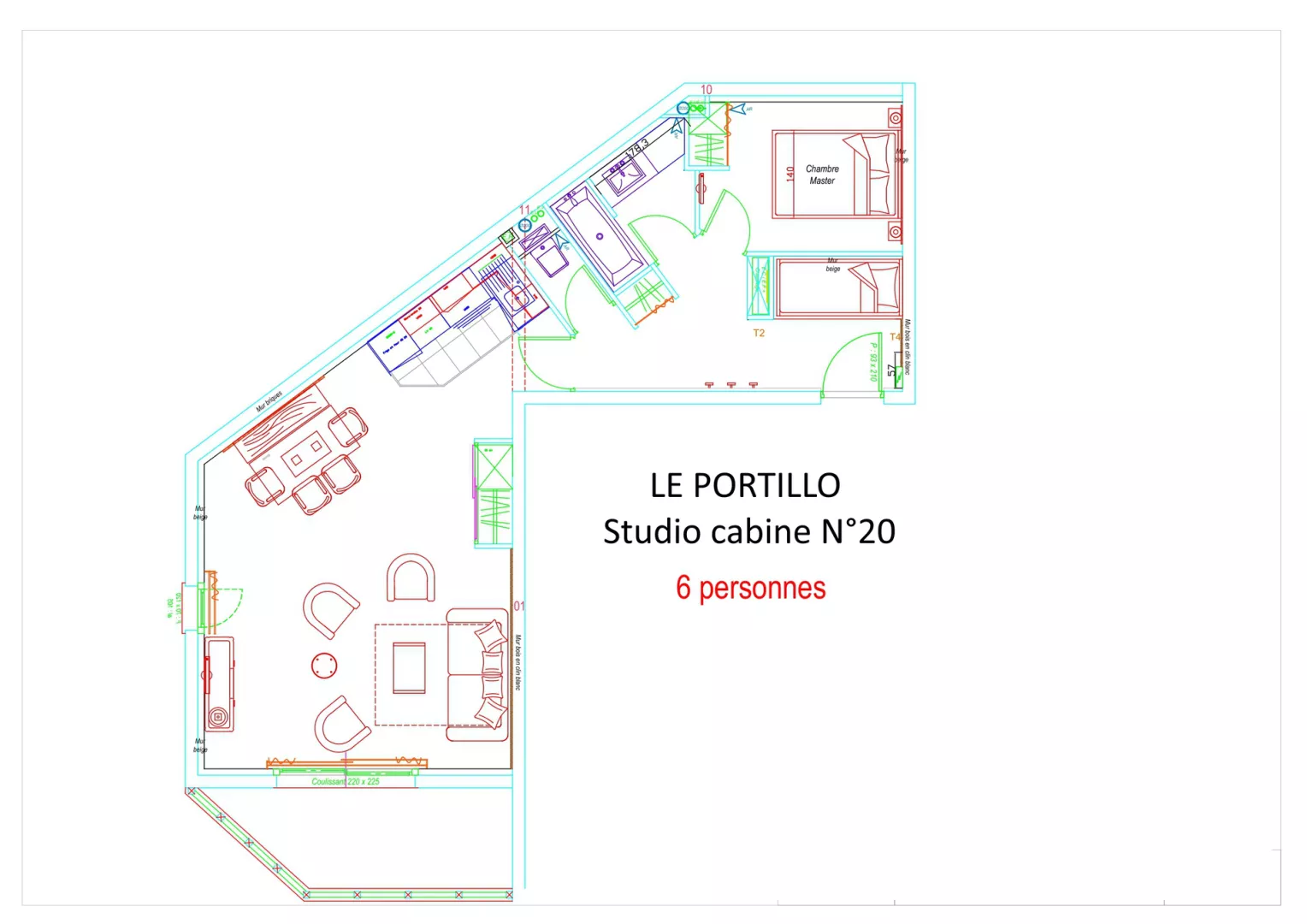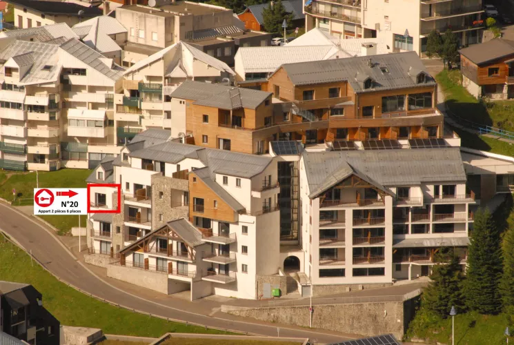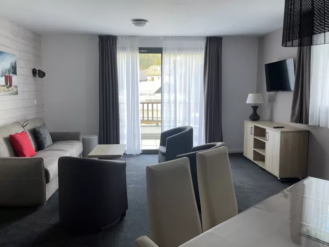 Residencia LE PORTILLO con piscina, estudio con cabina para 6 personas, de 56 m², orientación suroeste, vistas a las pistas y a la estación, situado en la 2.ª planta con terraza.