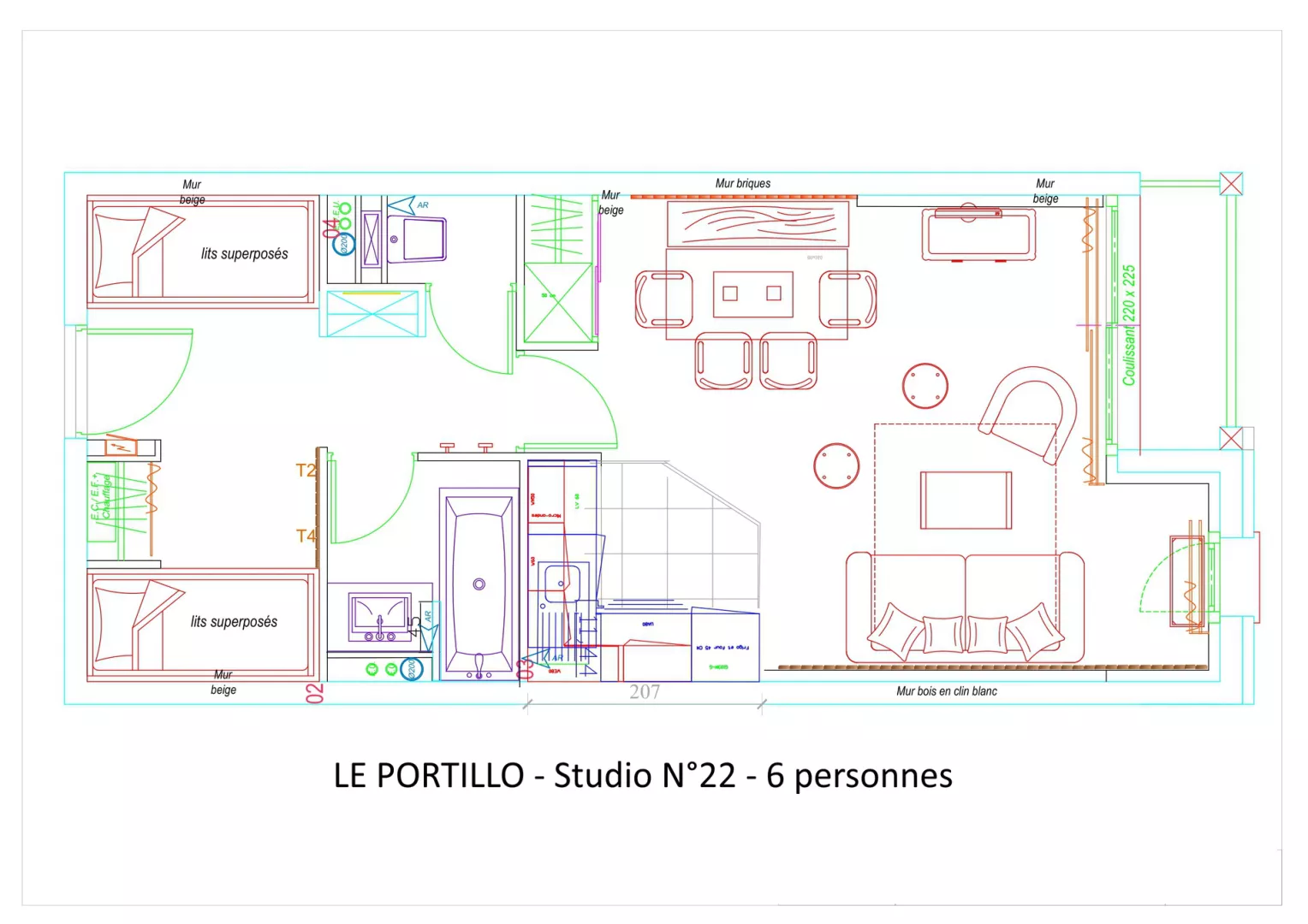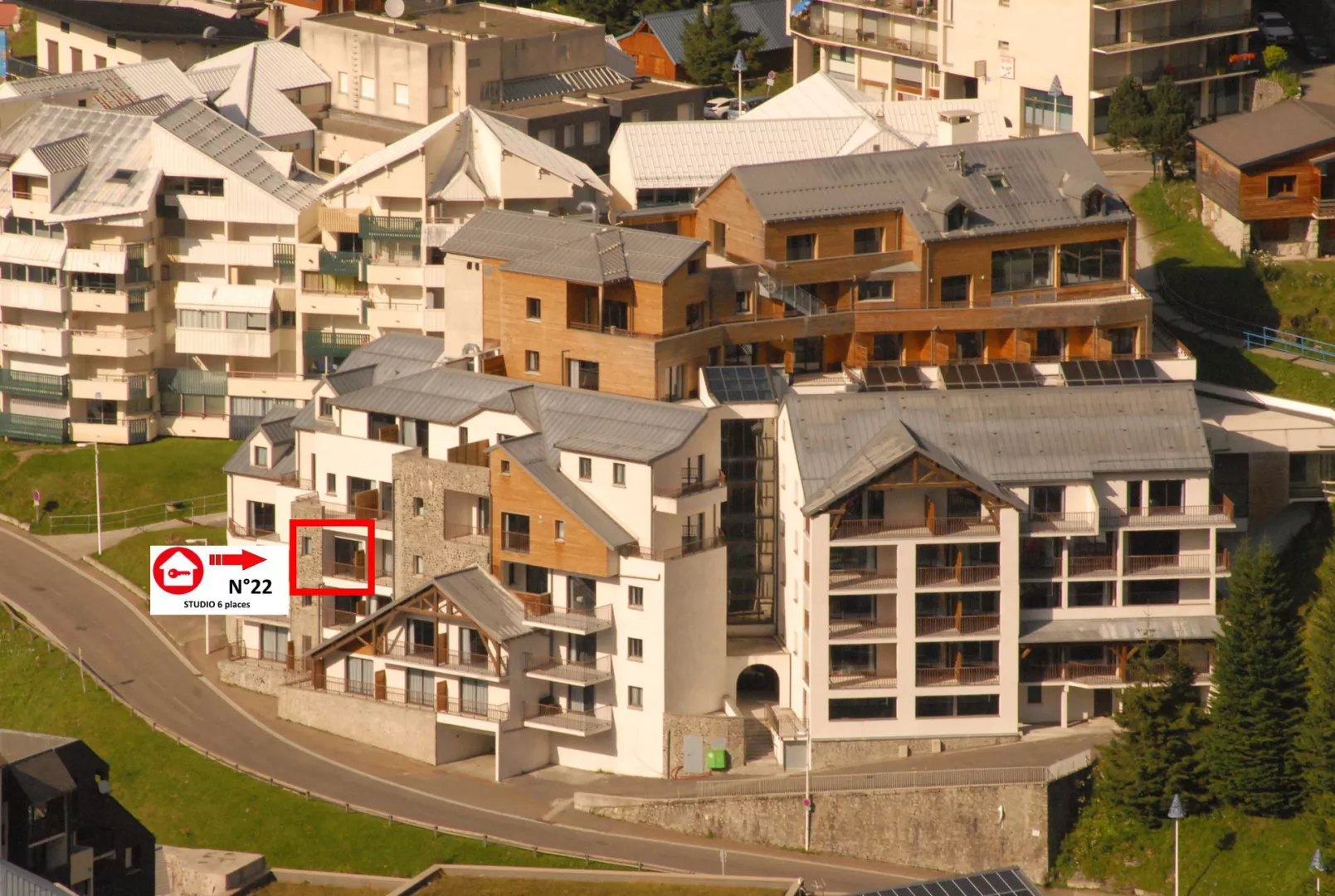 Residencia LE PORTILLO con piscina, estudio para 6 personas, de 37 m², orientación suroeste, vistas a la montaña y a las pistas, en la 2.ª planta con balcón.