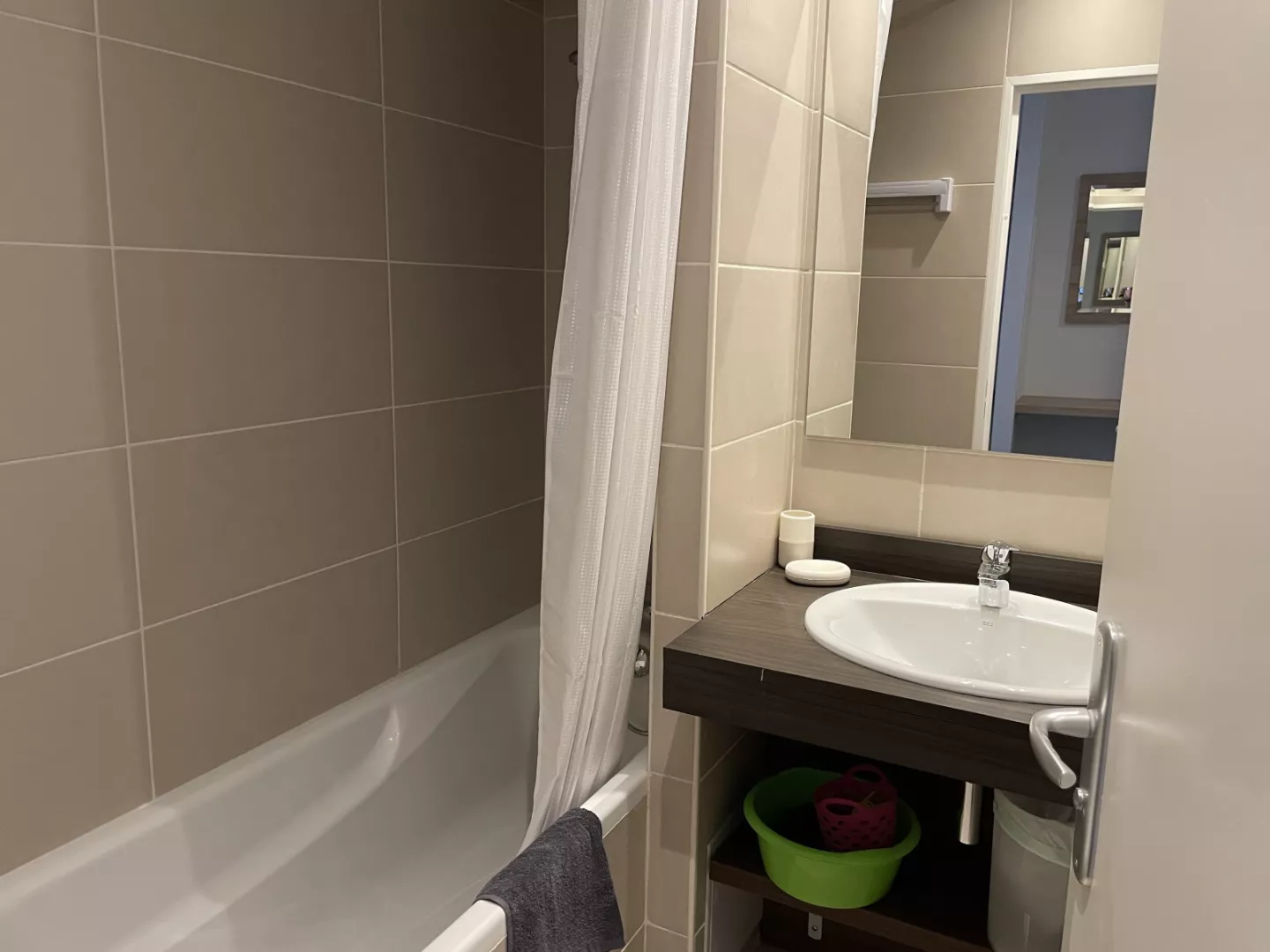 Cuarto de baño: lavabo, bañera y secador de pelo. Aseo independiente.