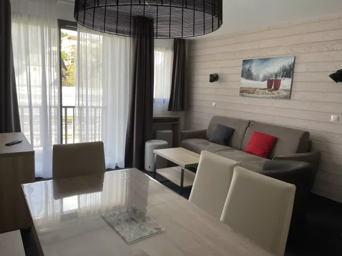 con bañera de hidromasaje y piscina para niños, gimnasio, sala de juegos, guardaesquíes con secador de botas. Wifi en los apartamentos y zonas comunes.
