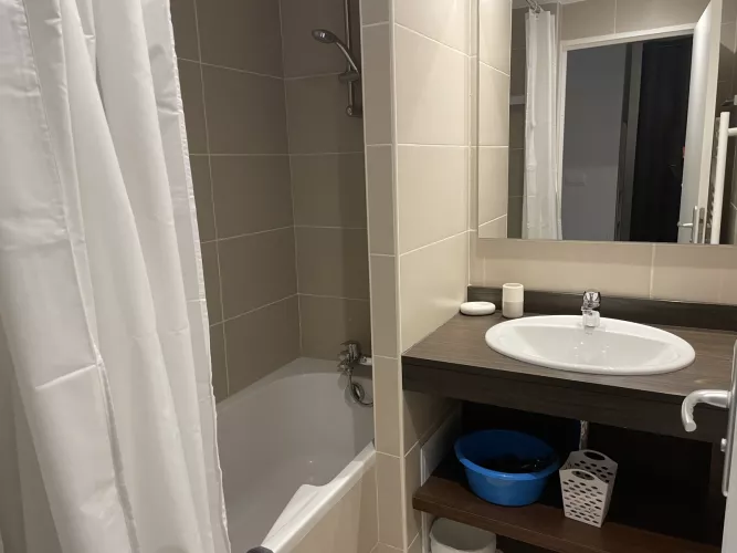 Cuarto de baño: lavabo, bañera, secador de pelo. Aseo independiente.