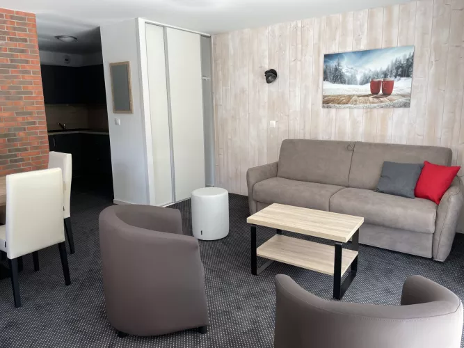 con bañera de hidromasaje y piscina para niños, gimnasio, sala de juegos, guardaesquíes con secador de botas. Wifi en los apartamentos y zonas comunes.