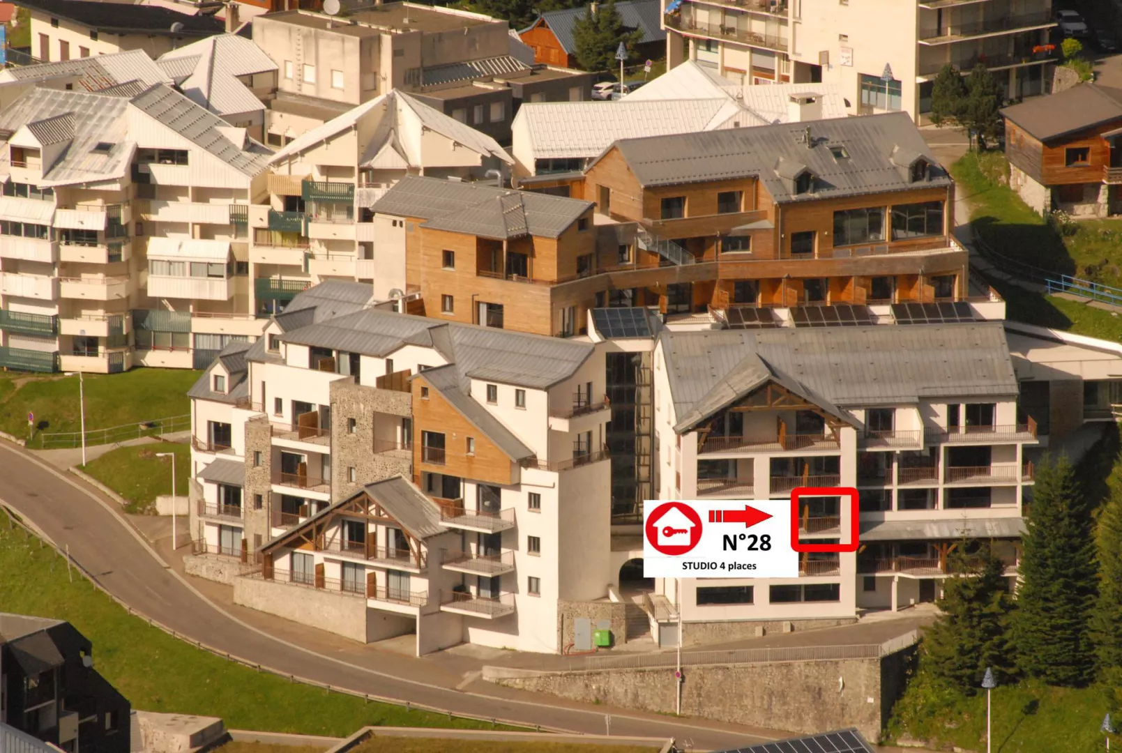 Idealmente situado en el centro de la estación. Comercios 100 m y pistas a 150m.