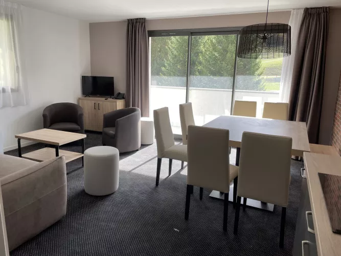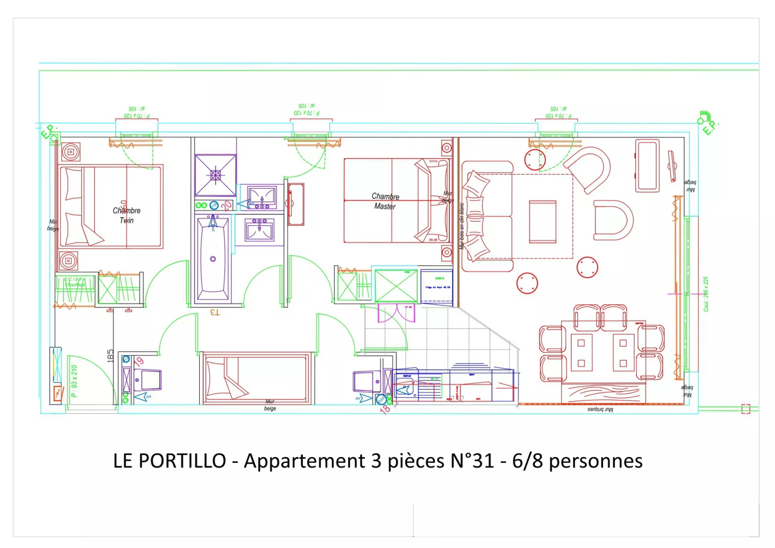 Residencia LE PORTILLO con piscina, apartamento de 3 habitaciones para 8 personas, de 61 m², orientación suroeste, vistas a las pistas y a la montaña, en la 2.ª planta con terraza.