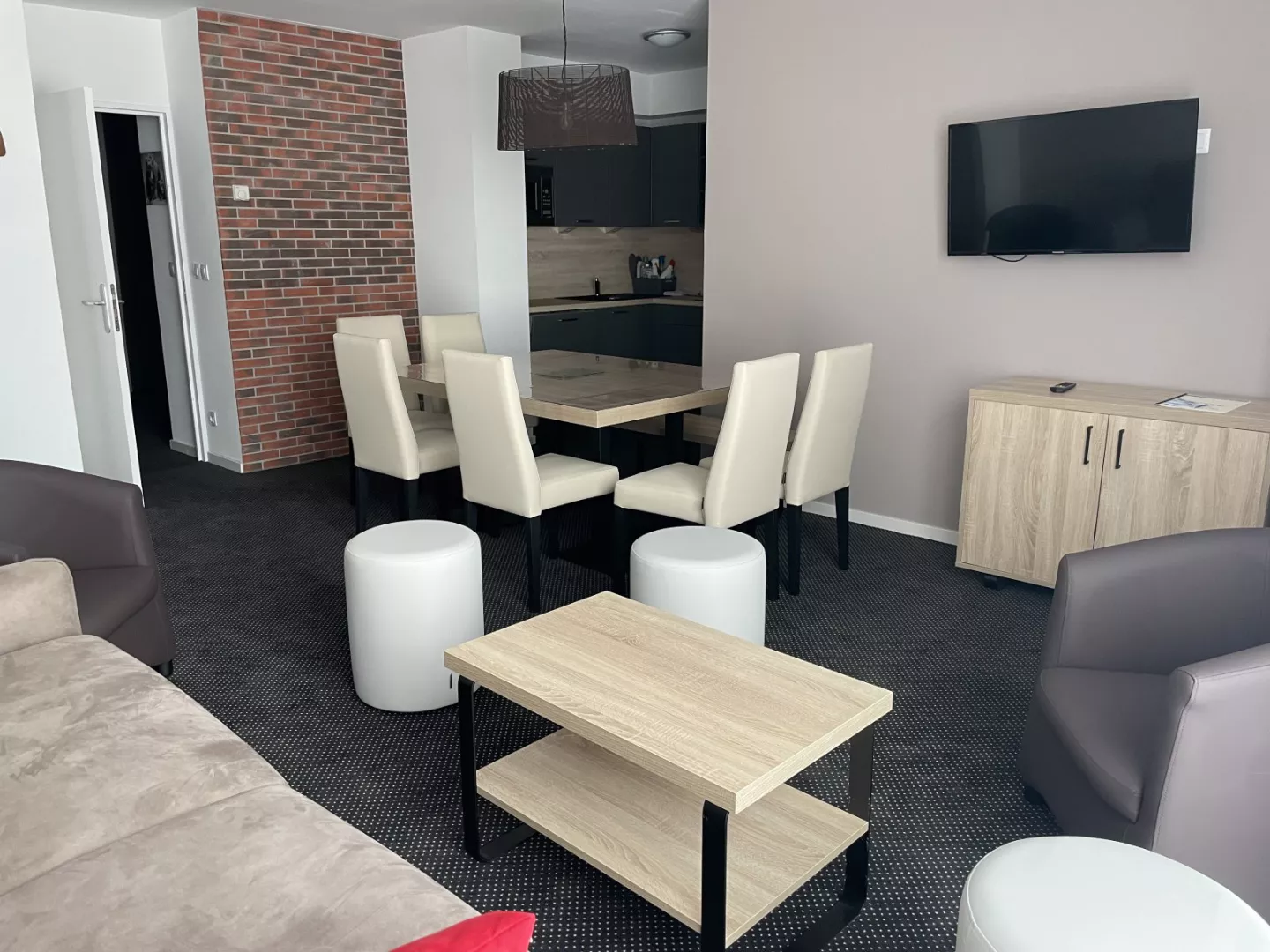 Salón: sofá cama doble de 160 cm, televisión.