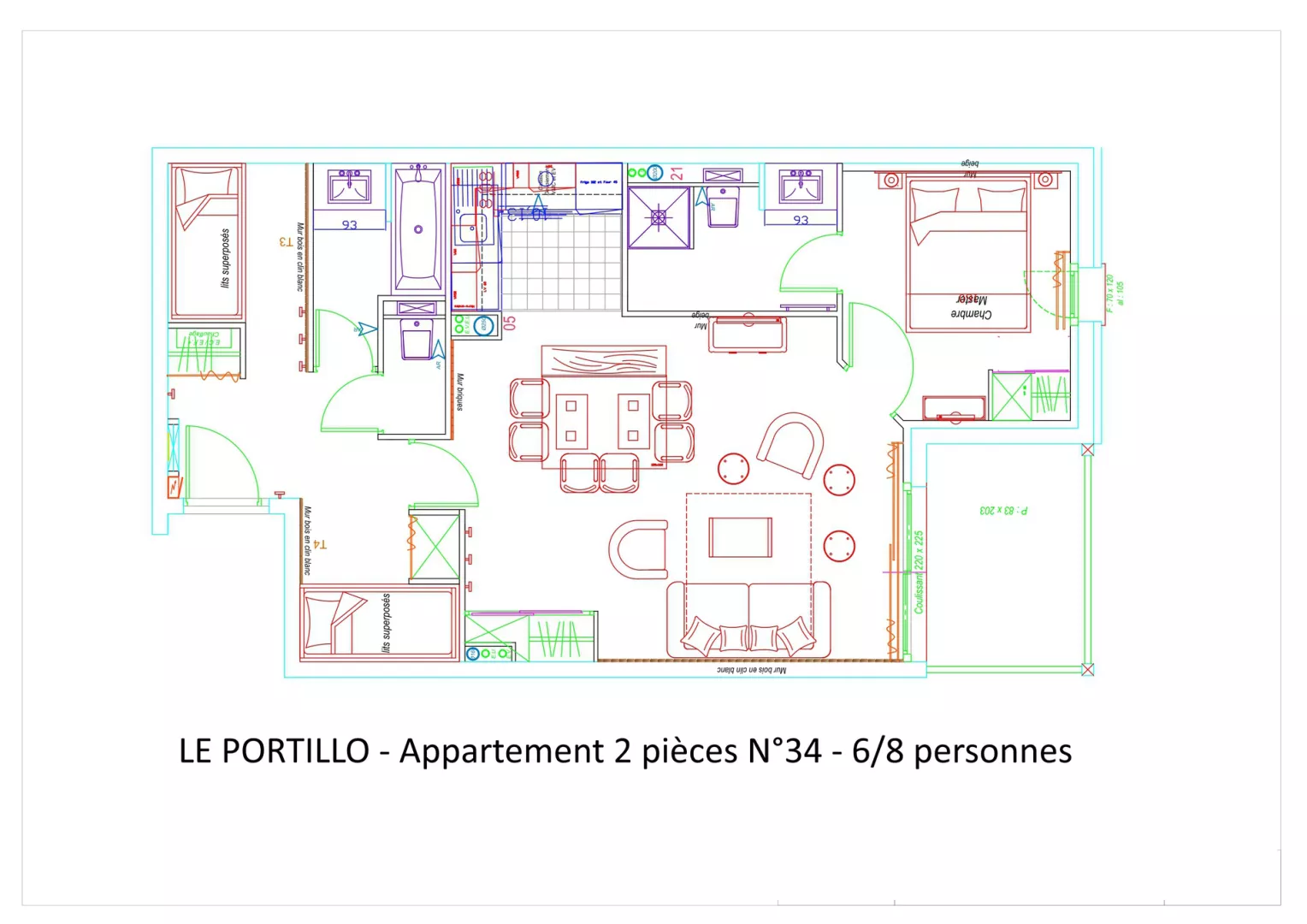 Residencia LE PORTILLO con piscina, apartamento de 2 habitaciones para 8 personas, de 61 m², orientación suroeste, vistas a las pistas y a la estación, situado en la 3.ª planta con terraza.