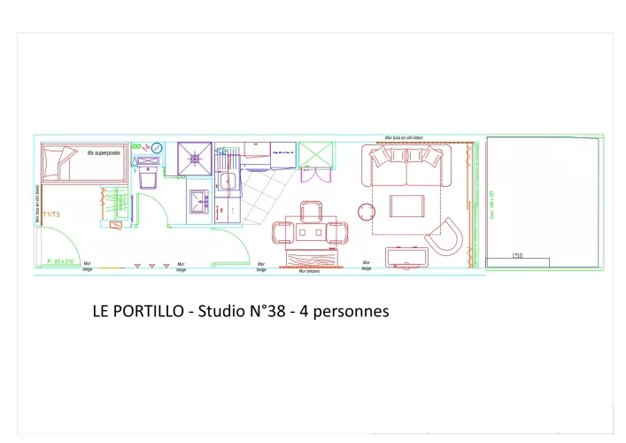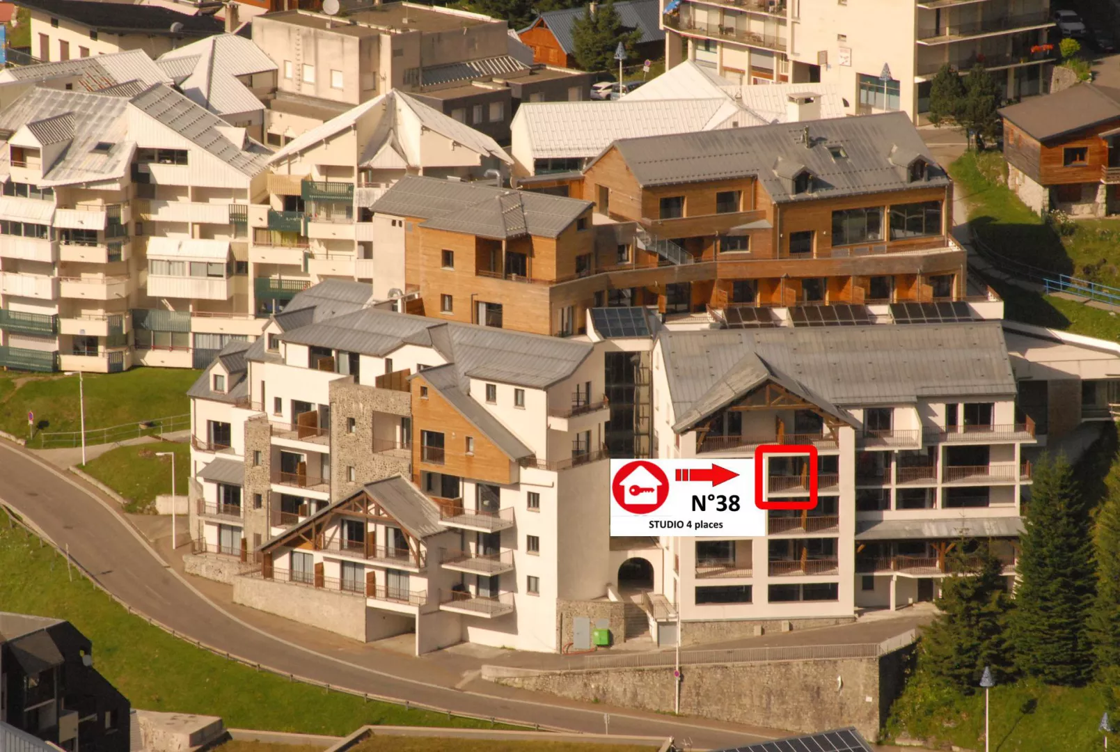 Residencia LE PORTILLO con piscina, estudio para 4 personas, de 29 m², orientación suroeste, vistas a las pistas y a la montaña, situado en la 3.ª planta con terraza.