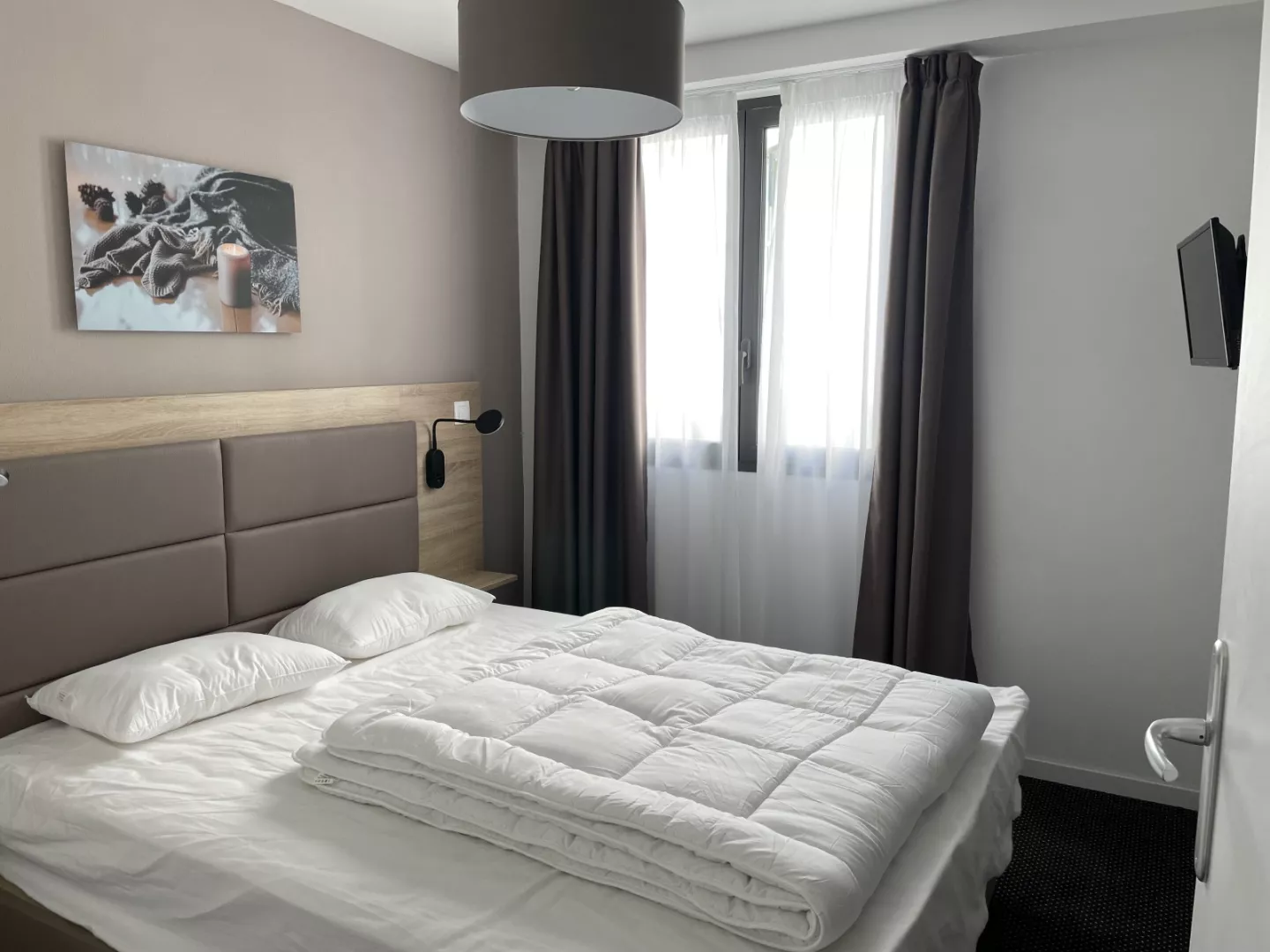 Habitación 1: cama de 160 cm, televisión y cuarto de baño: ducha, lavabo y WC.