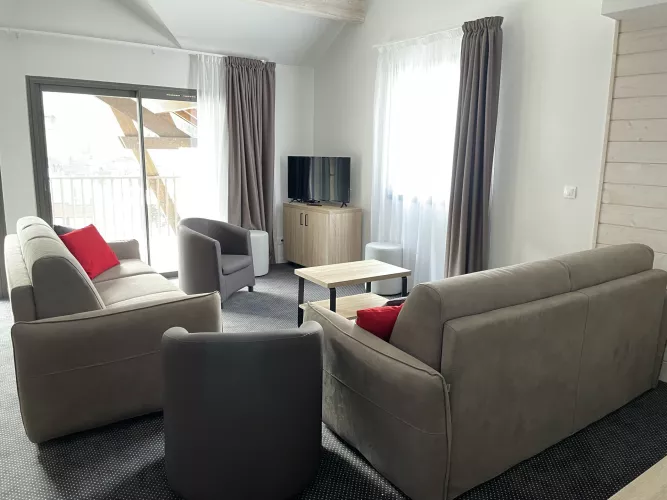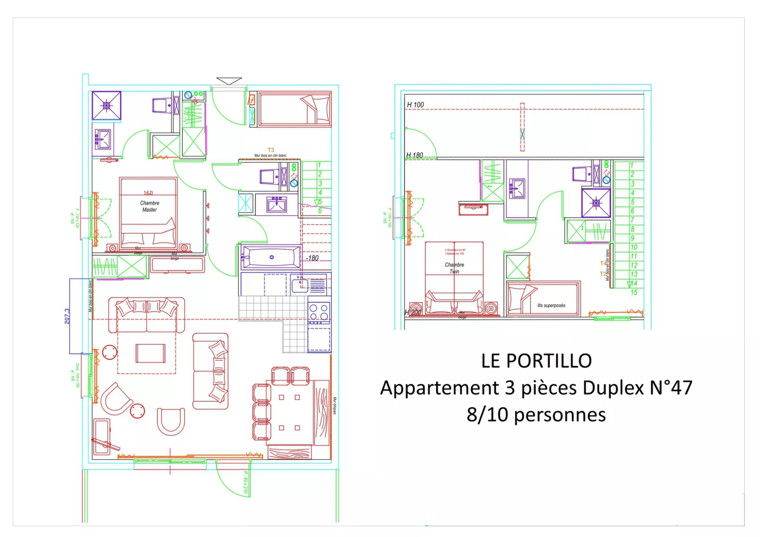 Residencia LE PORTILLO con piscina, apartamento dúplex de 3 habitaciones para 8/10 personas, 87 m², orientación suroeste, vistas a las pistas, situado en la 4.ª planta con terraza.