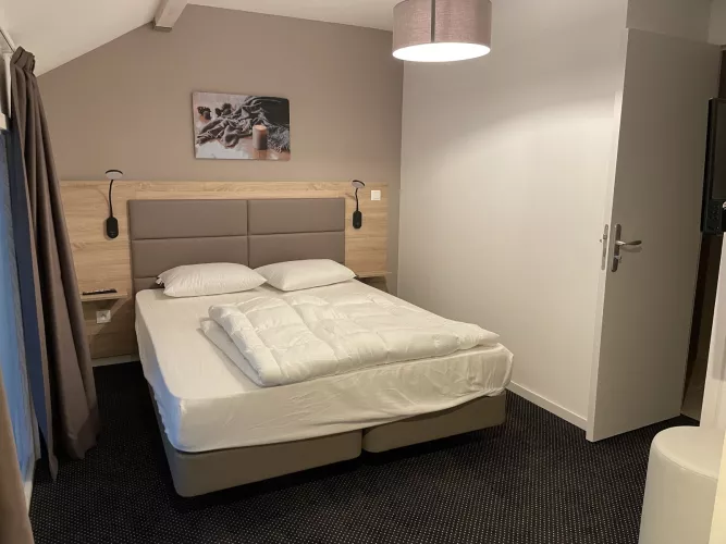 En el altillo: habitación con ventana opaca que da al salón con 1 cama de 160 cm, televisión y cuarto de baño: ducha, lavabo y WC.