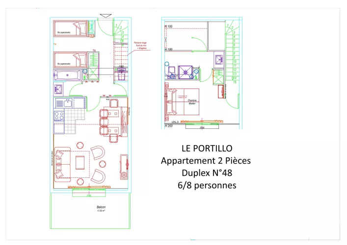 Residencia LE PORTILLO con piscina, apartamento dúplex de 2 habitaciones para 8 personas, de 61 m², orientación suroeste, vistas a la montaña y a la estación, en la 4.ª planta con terraza.