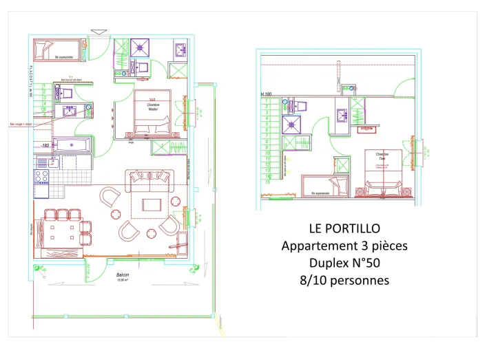 Residencia LE PORTILLO con piscina, apartamento dúplex de 3 habitaciones para 8/10 personas, 80 m², orientación suroeste, vistas a las pistas, situado en la 4.ª planta con terraza.