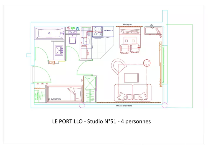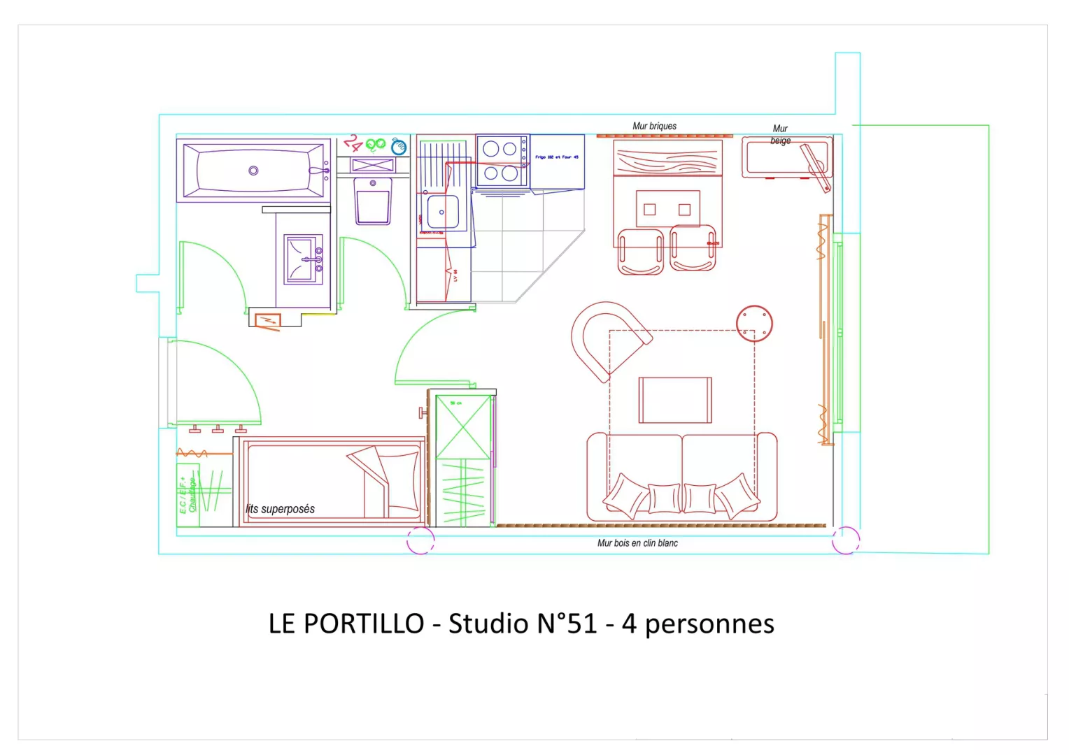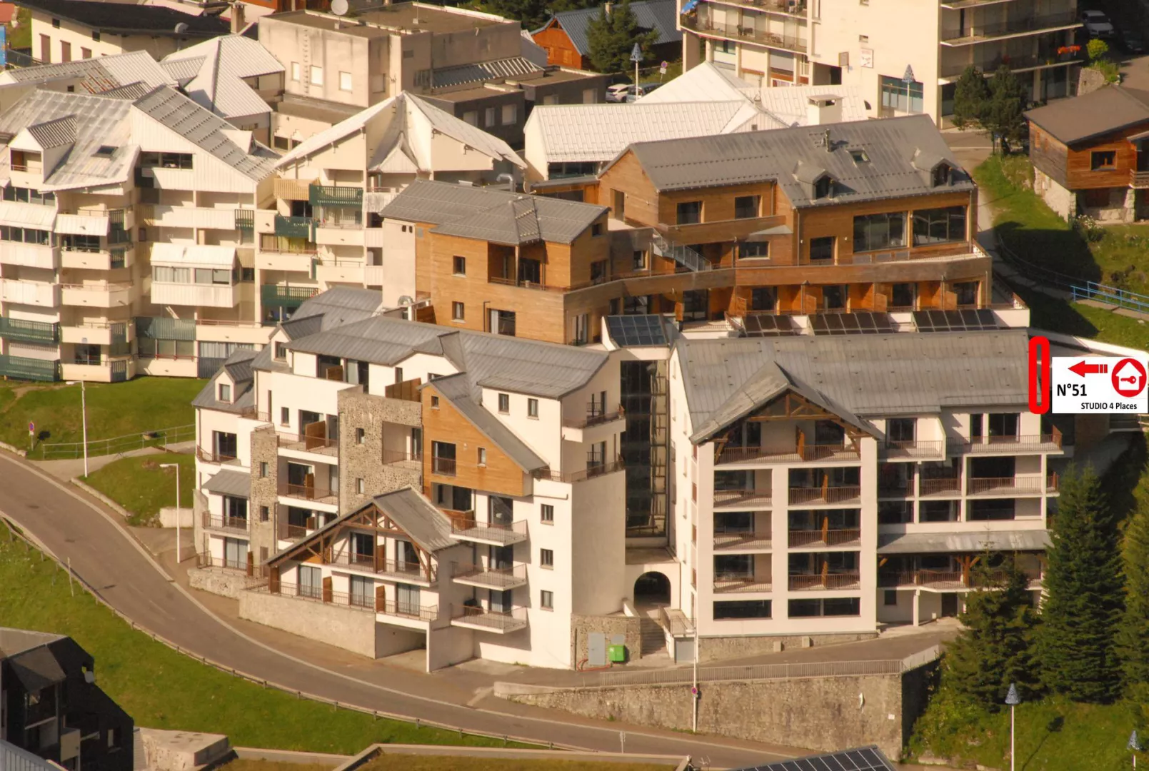 Residencia LE PORTILLO con piscina, estudio para 4 personas, 29 m², orientación este, vistas a la pista y a la montaña, situado en la 4ª planta con terraza.