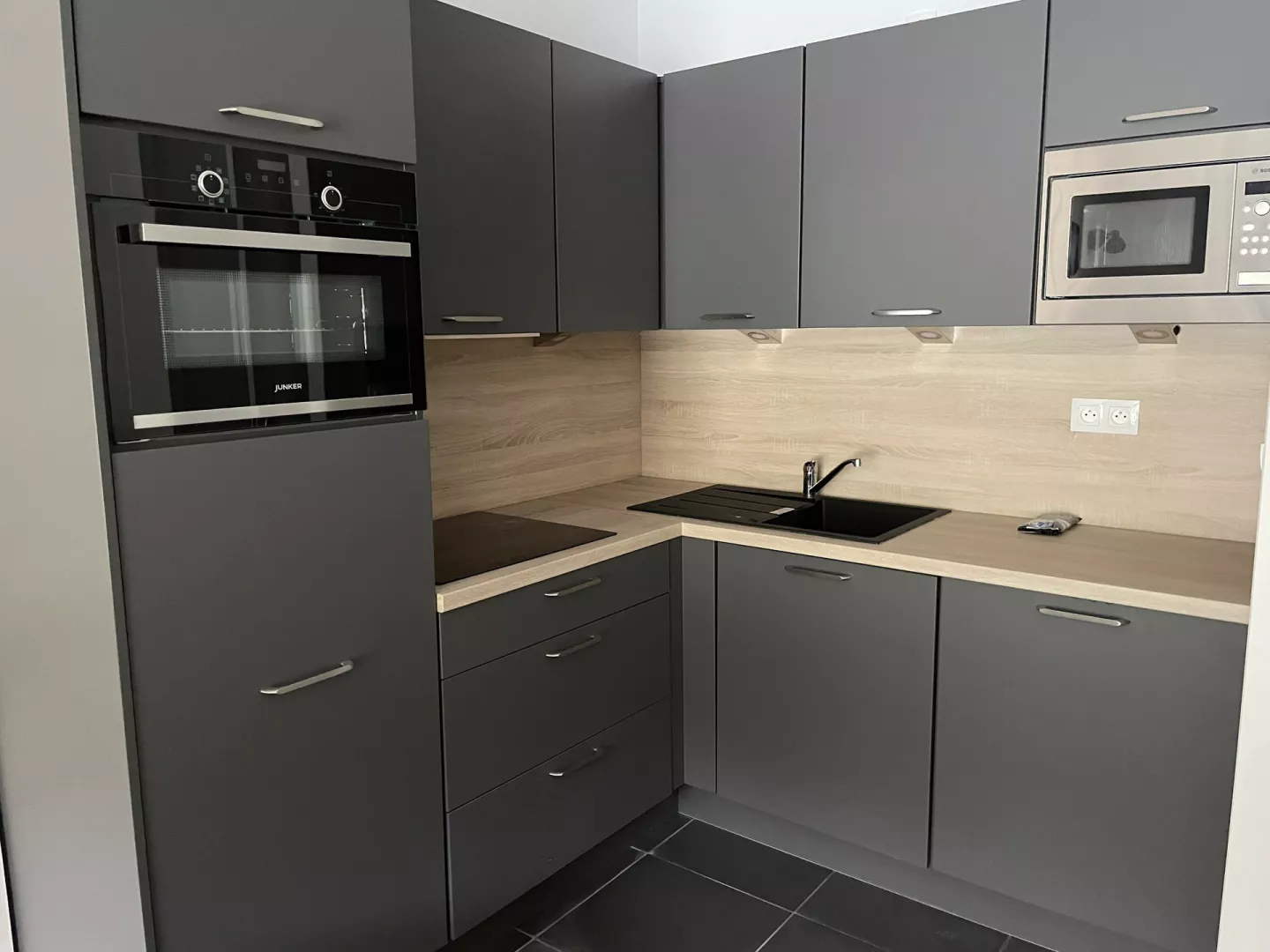 Cocina americana: frigorífico con congelador, placa vitrocerámica de 4 fuegos, horno, microondas, lavavajillas, cafetera de filtro, tostadora, hervidor, robot de cocina.