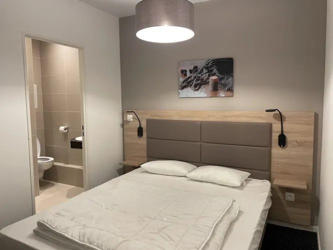 Cabina: habitación sin ventana con 1 cama de 160 cm, televisión y cuarto de baño: ducha, lavabo y WC.