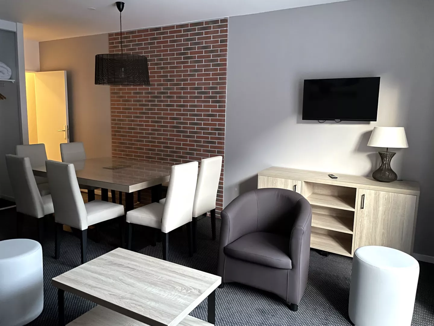 Salón: sofá cama doble de 160 cm, televisión.