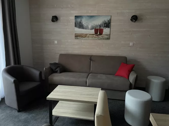 Residencia LE PORTILLO con piscina, estudio con camarote para 6/8 personas, 58 m², orientación sur, vistas a las pistas y a la montaña, situado en la 5.ª planta con terraza.