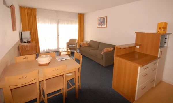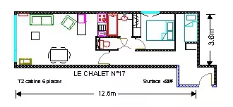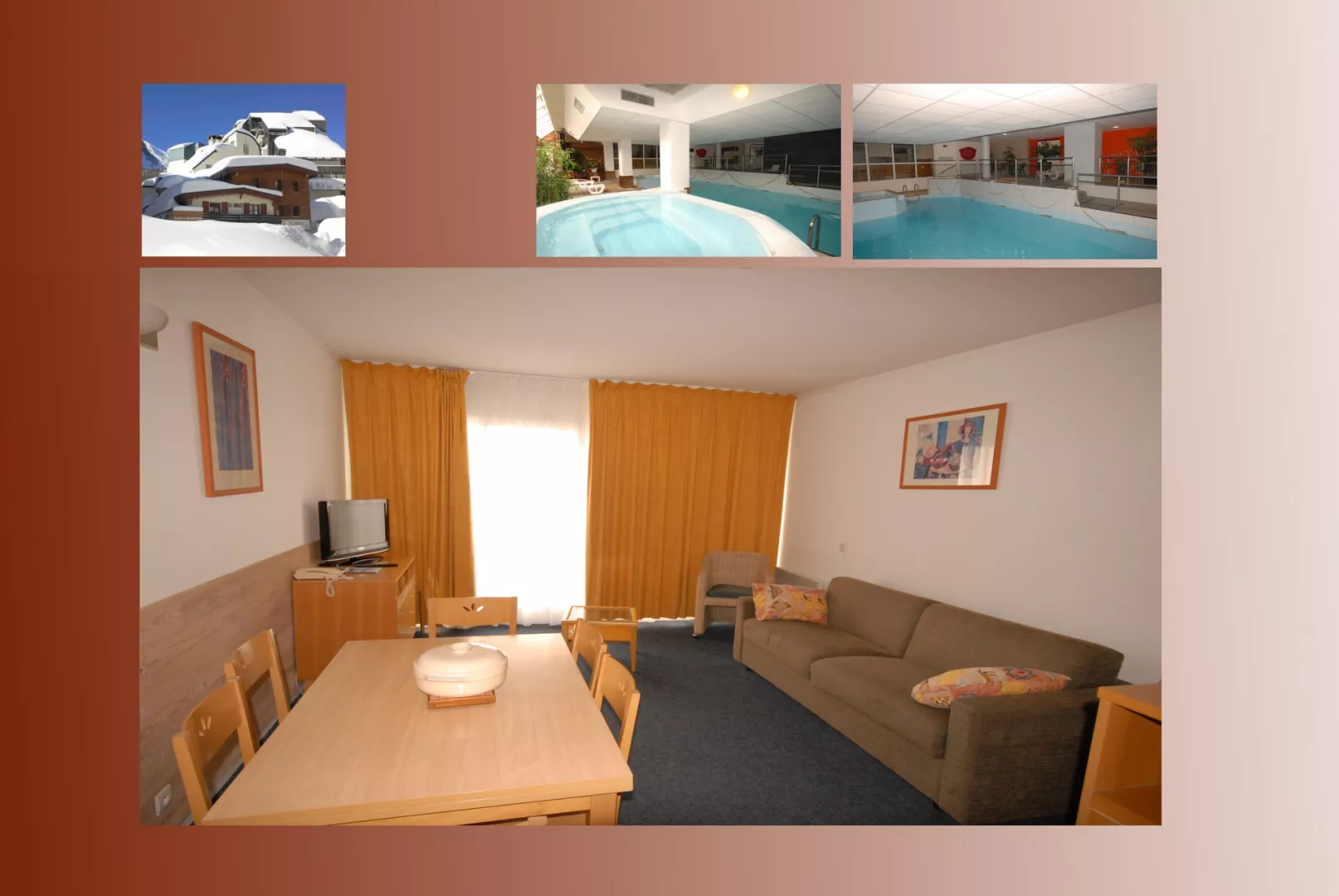 Residencia LE CHALET con piscina, apartamento de 2 habitaciones para 6 personas, 2.ª planta, vistas a las pistas, 48 m², orientación suroeste, armario para esquís con calefacción, calefacción eléctrica.