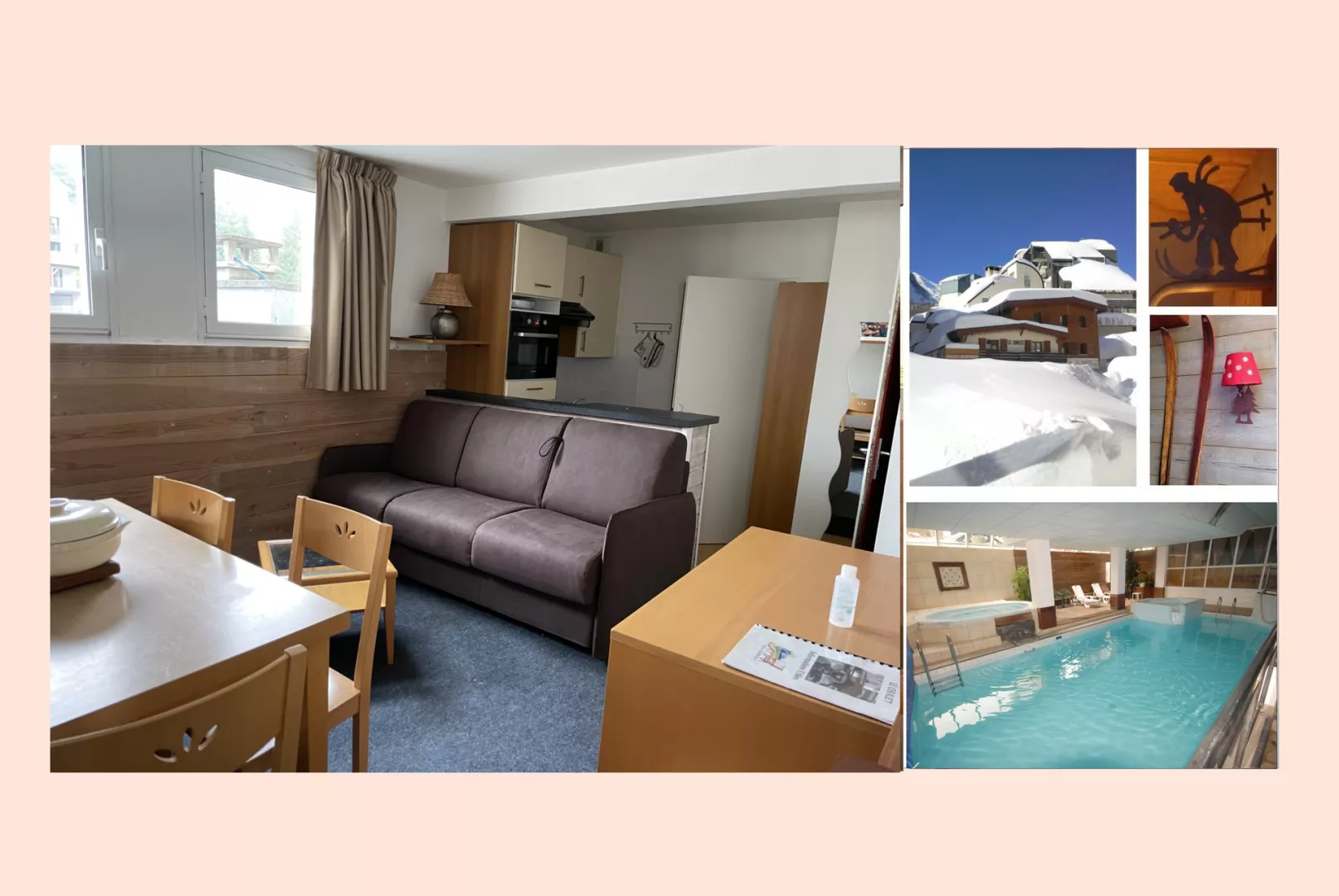 Residencia LE CHALET con piscina, estudio dúplex 6/7 plazas 3.ª planta, vistas a la estación, 35 m², orientación noreste, armario para esquís con calefacción, calefacción eléctrica.