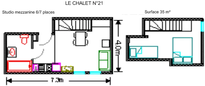 Bajando las escaleras se accede a una habitación dividida en dos espacios: 1 litera con una cama de 140 y otra de 90, y un rincón con 1 litera de 80.