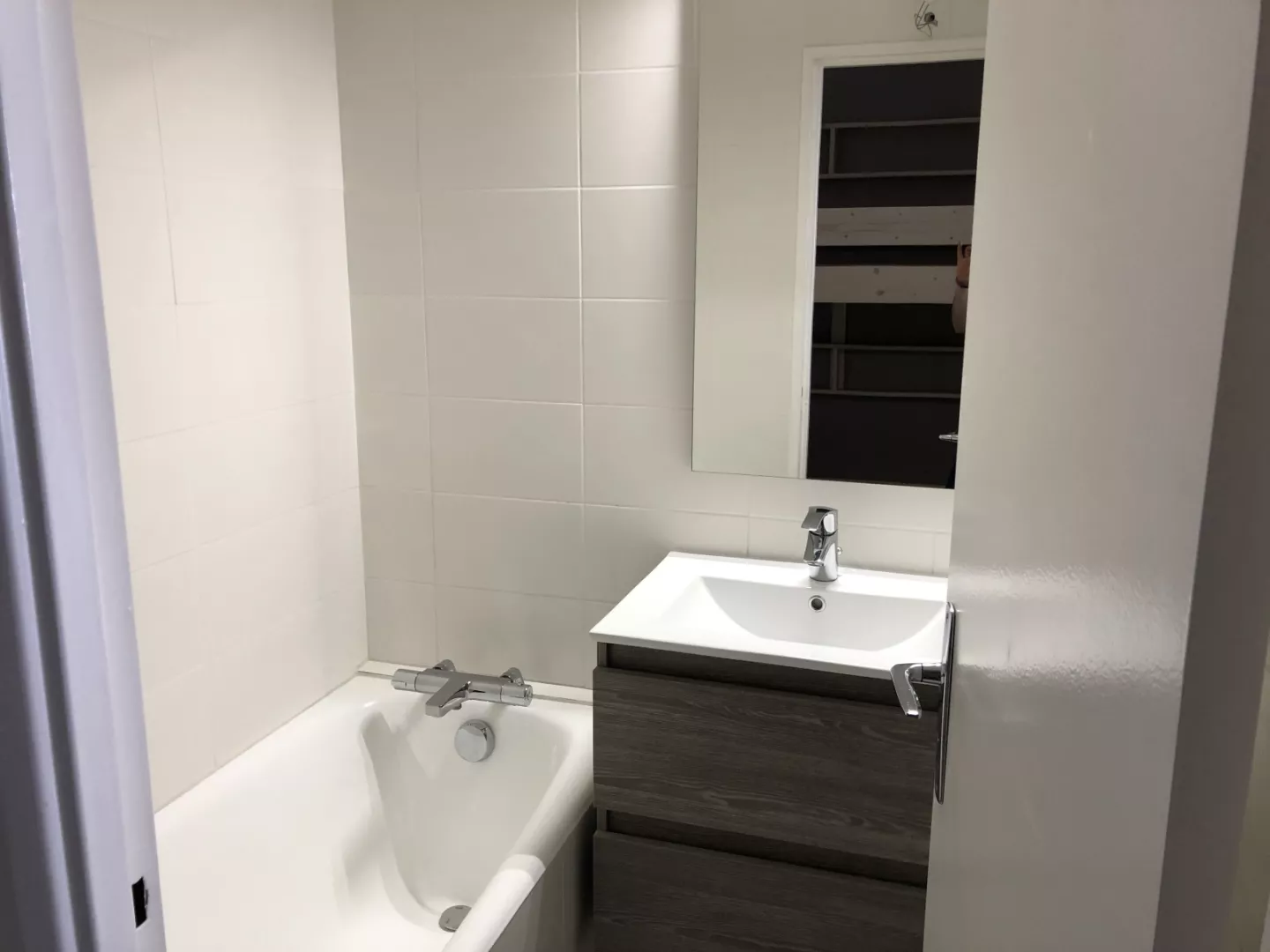 Cuarto de baño con lavabo, bañera y WC independientes.