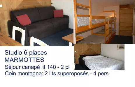Residencia LES MARMOTTES, estudio confortable para 6 personas, 3.ª planta, vistas a las pistas, 29 m², orientación sureste, guardaesquís, calefacción eléctrica.