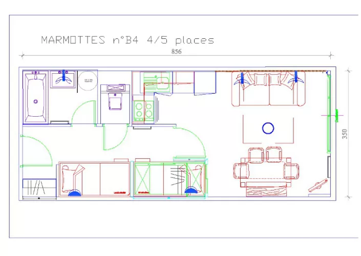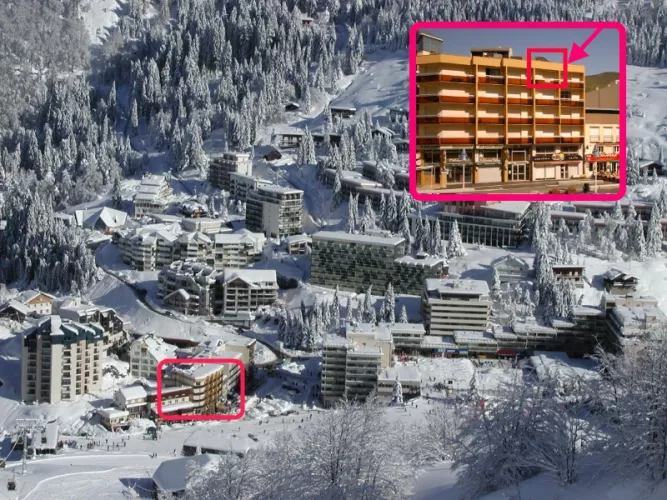 Residencia LES MARMOTTES, estudio confortable para 4/5 personas, 4.ª planta, vistas a las pistas, 29 m², orientación sureste, guardaesquís, calefacción eléctrica.