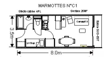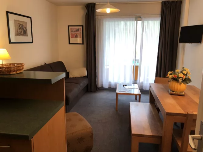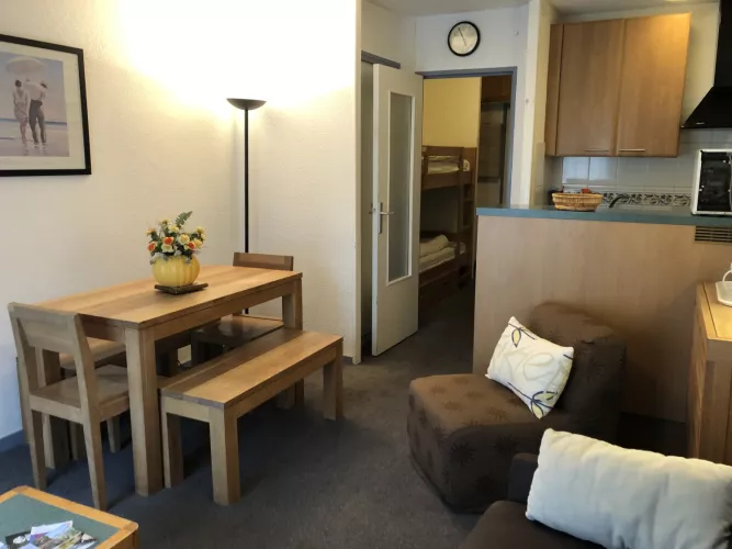 Residencia LES MARMOTTES, estudio confortable para 4 personas, 1.ª planta, vistas a las pistas, 26 m², balcón orientado al sureste, guardaesquís, calefacción eléctrica.