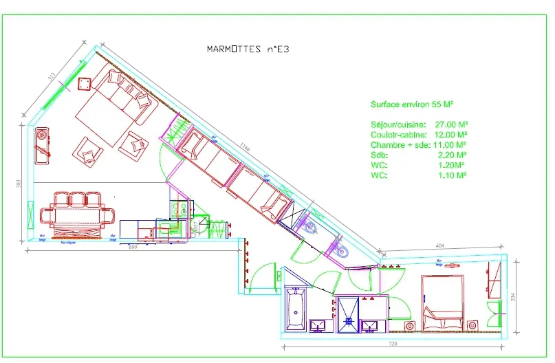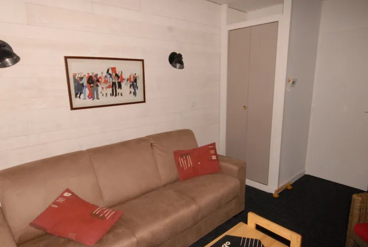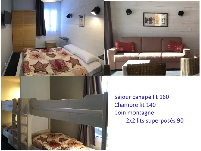 Residencia LES MARMOTTES, apartamento de 2 habitaciones con zona de noche para 8 personas, 3.ª planta, vistas a las pistas, 55 m², orientación sur, balcón, calefacción eléctrica.