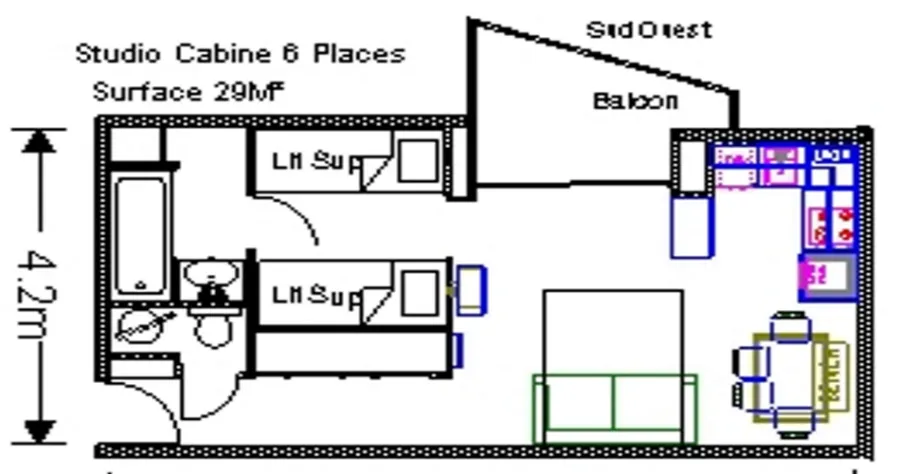 Cabaña STUDIO situada en la 7ª planta cerca y frente a las pistas de esquí.