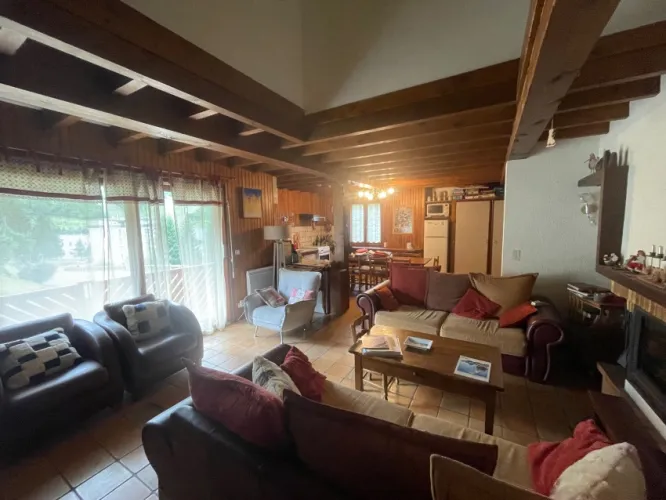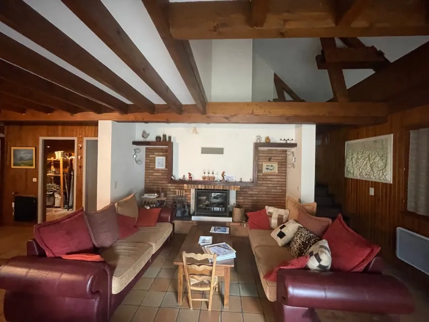 Chalet independiente en la estación de Gourette. Preciosa sala principal con cocina y chimenea, 6 dormitorios y vistas a las pistas de esquí. Accesible en coche.